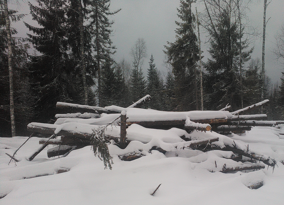 Заготовленная древесина на лесосеке. Не является валежником