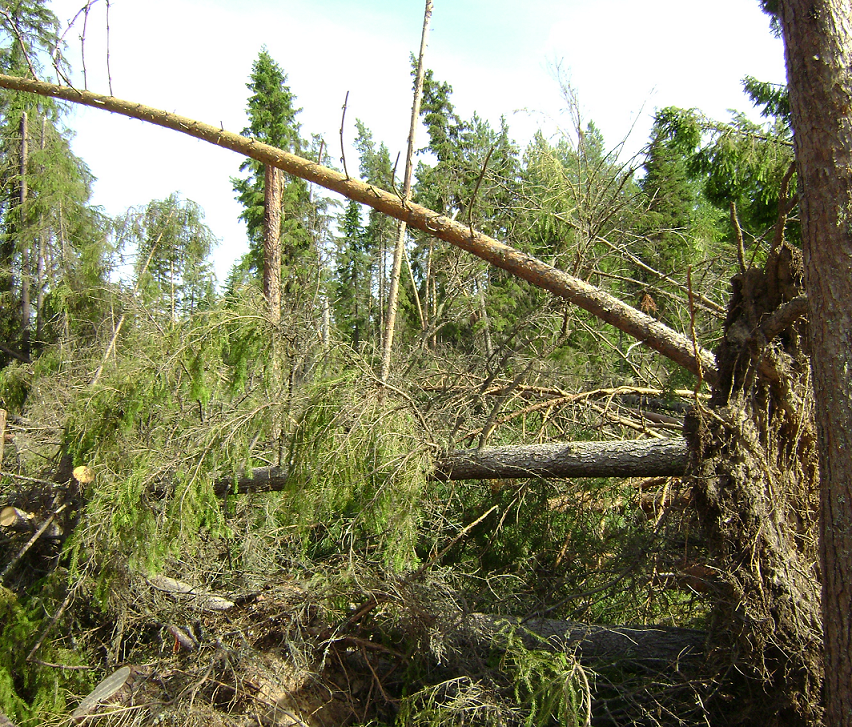 К валежнику не относятся сухостойные (изображение № 2) и поваленные ветром деревья с зеленой листвой или хвоей, не имеющие признаков естественного отмирания (изображение № 3), а также заготовленная древесина на лесосеке (изображение № 4) и порубочные остатки (изображение № 5), поэтому нельзя их распиливать и вывозить из леса.