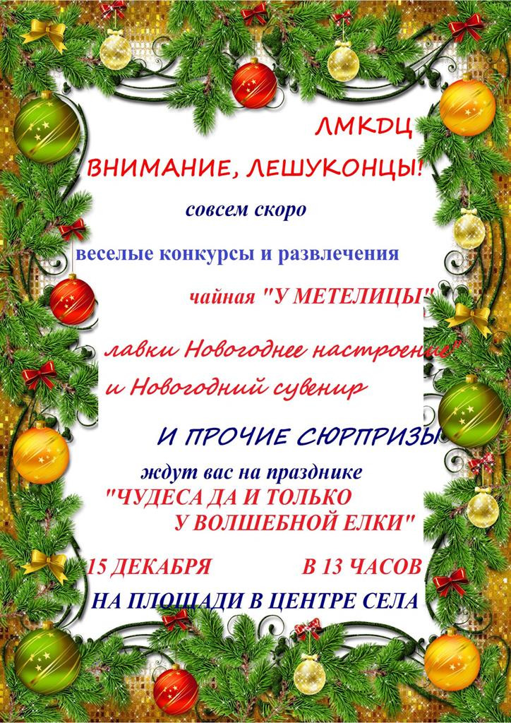 Приглашаем 15 декабря 2019г. в 13.00 на праздник - Чудеса да и только у волшебной елки.