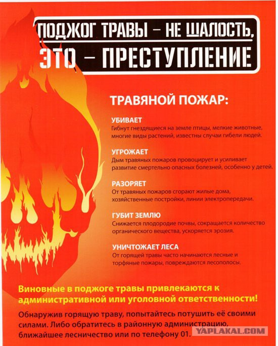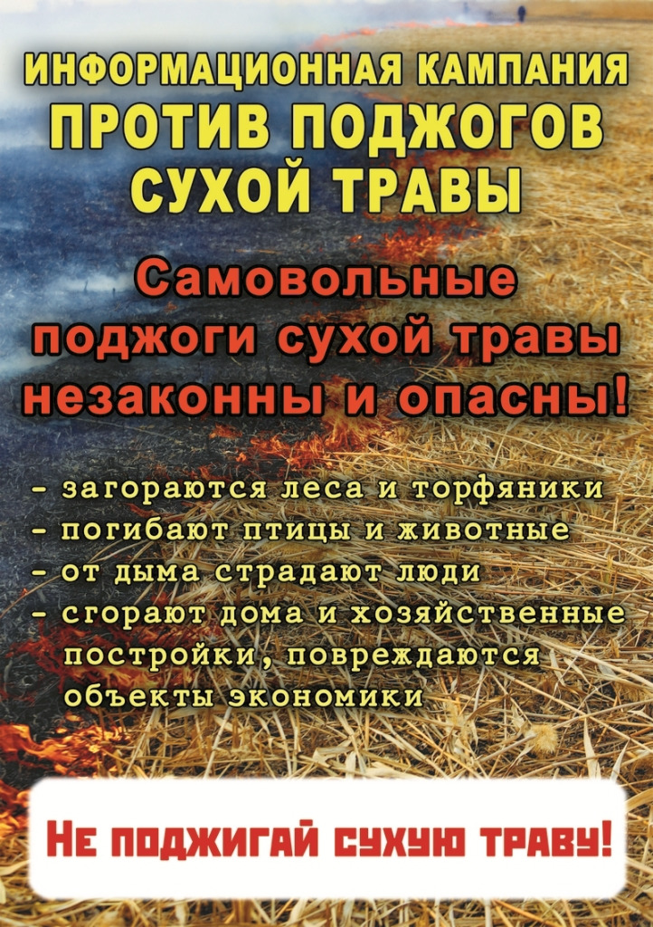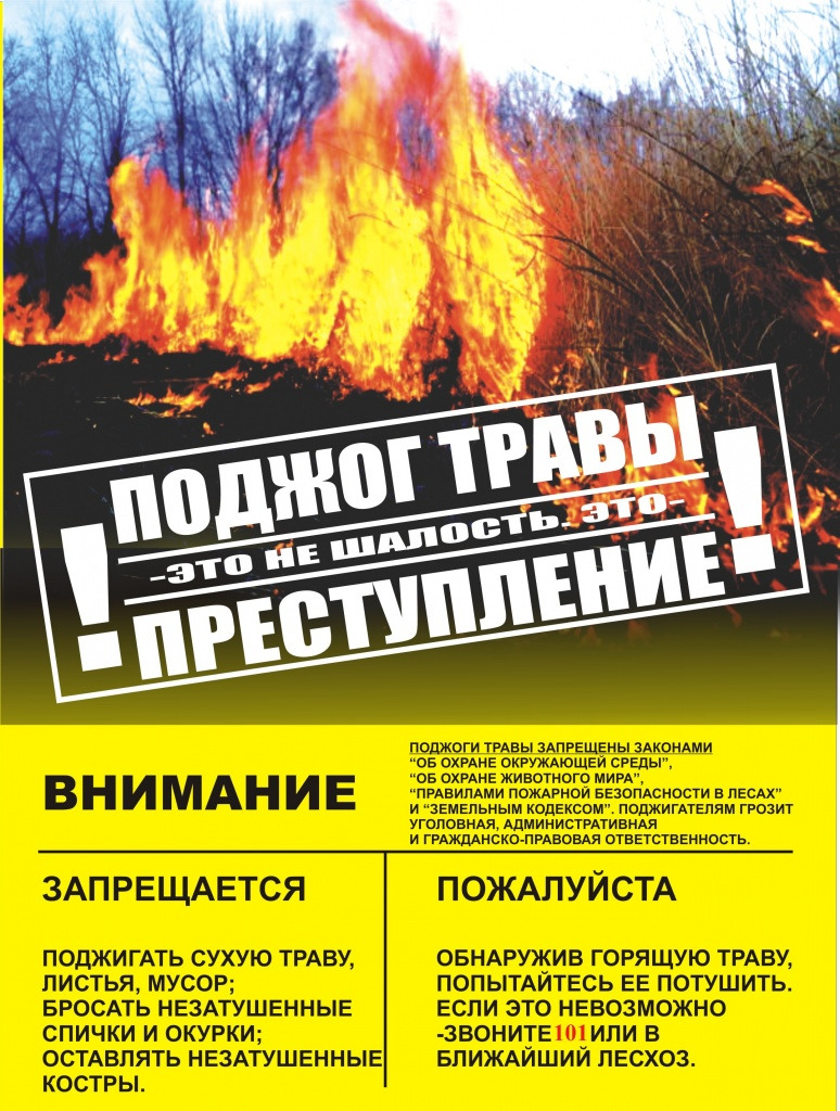 Самовольные поджоги сухой травы незаконны и опасны!