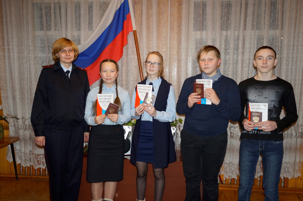 В День Конституции Российской Федерации 12 декабря 2018г. Лешуконским территориальным отделом Агентства ЗАГС и Миграционным пунктом пункта полиции по Лешуконскому району проведено торжественное вручение паспортов. В мероприятии приняли участие специалисты отдела по семейной и молодёжной политике, заместитель прокурора Лешуконского района, которые поздравили ребят с одним из важных событий в их жизни – получением паспорта гражданина России и пожелали им успехов.